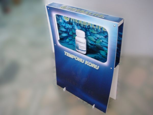 Mağaza, cafe veya restoranların önünde, tezgah üstünde ve duvarlarda menü posteri gibi görsellerinizi sergileyebileceğiniz pratik etkileyici bir üründür. Posterlerinizin bozulmaması için iç mekan baskılarda ön yüzeyine parlak veya mat laminasyon atarak korunması sağlanır. Tavana misina ile asılan dönkartlar Mağazaların renkli görünmelerini sağlamaktadır.